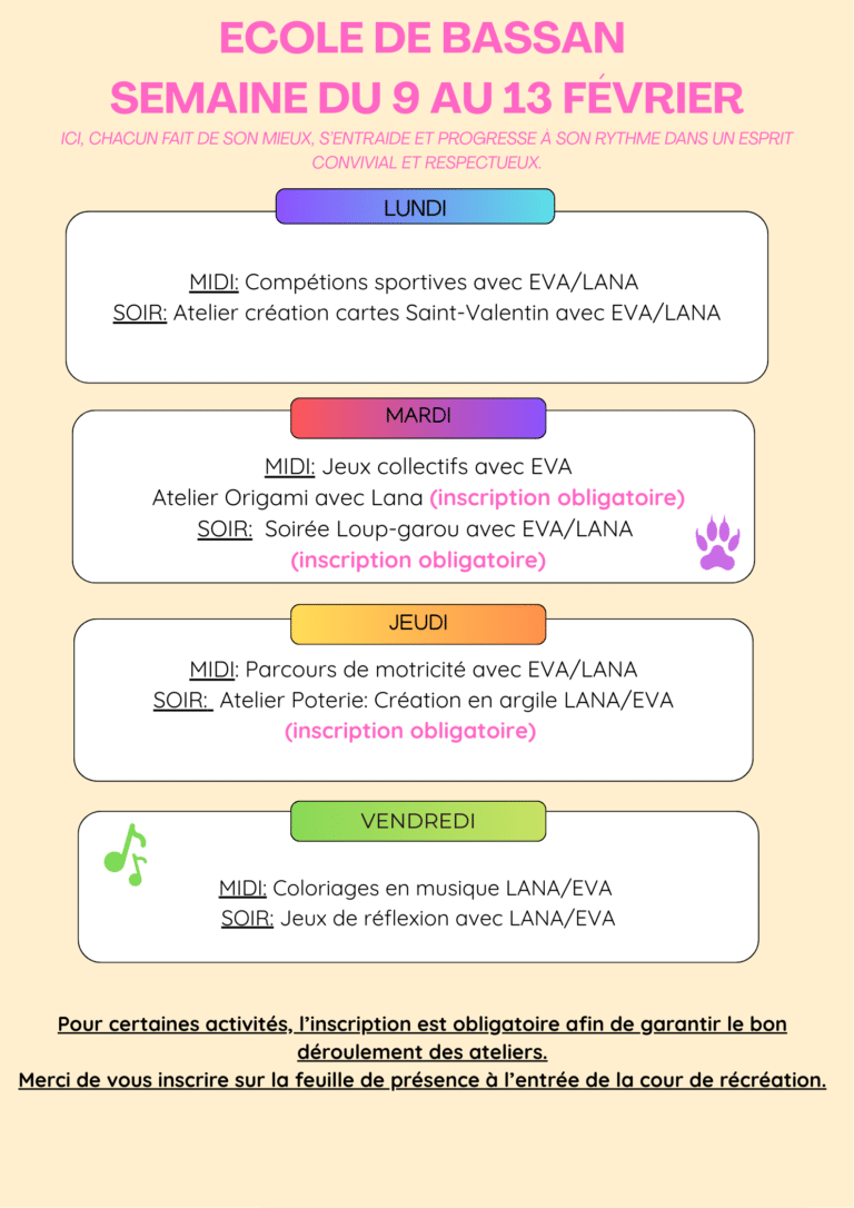 Programme de la semaine :